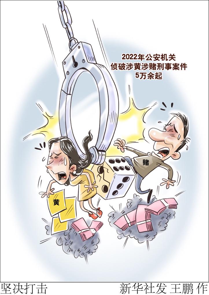 新华社北京3月27日电(记者熊丰)全国公安机关治安部门紧盯社会治安形势和黄赌违法犯罪动态趋势,持续依法严厉打击组织卖淫、开设赌场、聚众赌博等突出违法犯罪活动,整治黄赌治安乱象。2022年,全国共侦破涉黄涉赌刑事案件5万余起,查处黄赌治安案件40余万起。