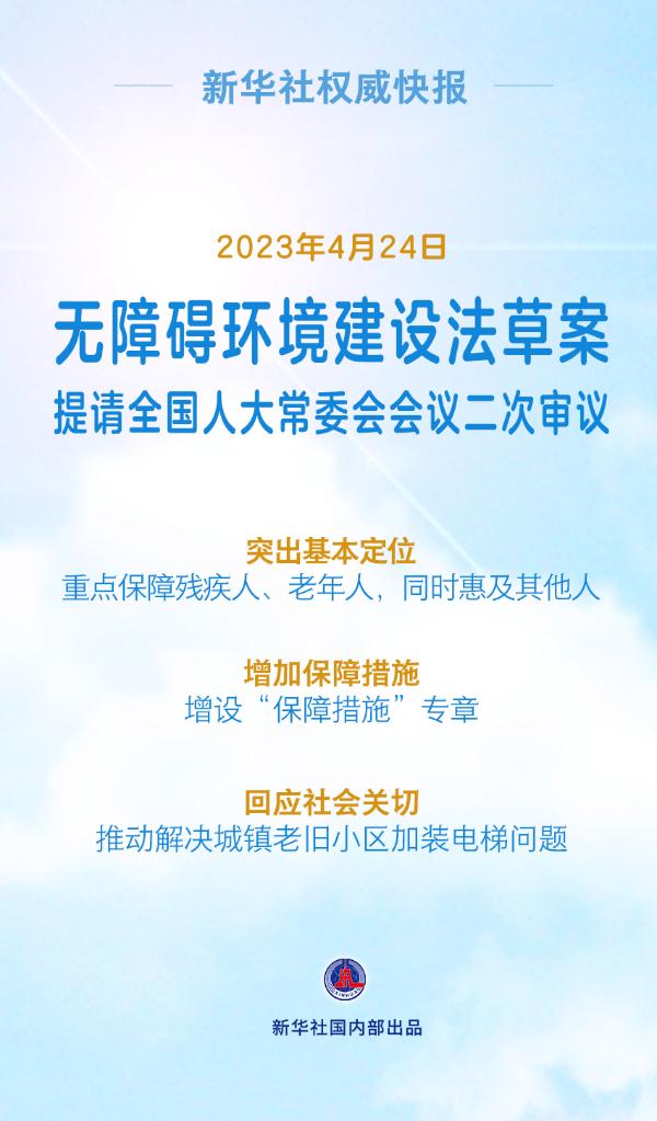 无障碍环境建设法草案4月24日提请全国人大常委会会议二次审议。