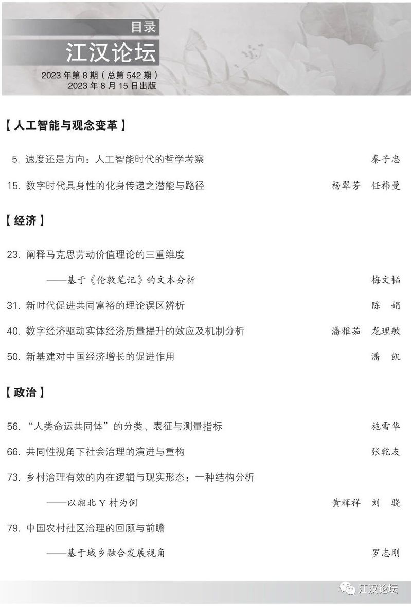 《江汉论坛》2023年第8期目录及文章摘要