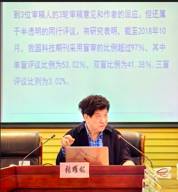 为促进学报高质量发展,推动我校一流学科建设,学报编辑部于11月10日上午在汇知楼101会议室成功举办“高质量期刊发展系列讲坛(四)”。本次讲坛邀请了《新华文摘》原总编辑张耀铭编审、《南京大学学报》原主编朱剑编审分别作题为“学术期刊高质量发展的新趋势”和“数字时代的同行评议:一个有待破解的悖论一一以学术期刊匿名审稿制为中心”的学术报告。讲坛由《新利18官方客服学报》(法治论丛)执行主编康敬奎编审主持。