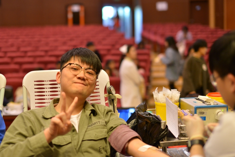 学工部的叶尔江老师是一名有着“熊猫血”的献血者,今年已经是他的第五次献血。叶尔江表示:“我有这个能力,有这个责任,而且还年轻,说不定这次200毫升能够救一个生命。资产与设备管理处的彭辉老师,第15年献血,用行动践行着红十字精神。