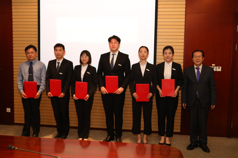 在校领导的关心支持下,教务处牵头,自3月底开始备战此项赛事,组建了由刑事司法学院陈丹彤、韩柳、余淑雯、刘钧叶、王前鑫、周屿衡、夏欣如、谭西麟,经济法学院钱睿,国际法学院甘鹏鑫为参赛队员的校队。关保英为队员们颁发奖状。