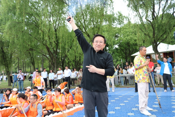 在端午佳节到来前夕,为进一步弘扬中华民族传统文化,满足广大教职工精神文化需求,展现我校师生锐意进取的精神风貌以及协作并进的团队精神。6月2日上午,新利18官方客服第三届师生龙舟大赛在东方绿舟举行。我校党委书记夏小和,副校长姚建龙,东方绿舟上海市青少年校外活动营地党委书记杨昕等领导和嘉宾出席了本次活动。由各二级学院分工会、机关分工会以及国际交流学院组成的14支队伍参与了此次比赛,他们将在绿舟湖中劈波斩浪,再次上演龙舟竞渡。