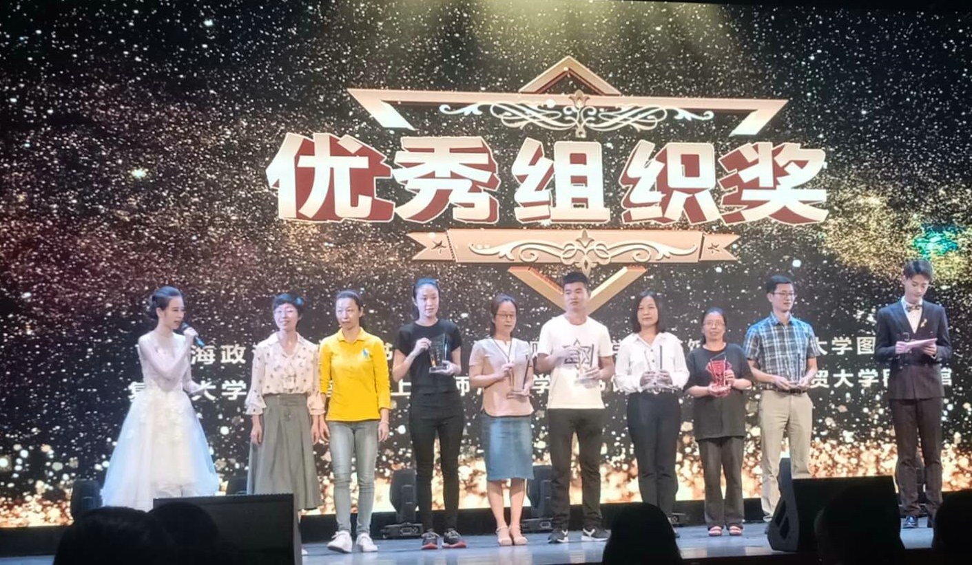 6月14日,由上海市图书馆学会阅读推广委员会主办的“绘声绘色 喝彩中国”——2019“博看杯”朗读大赛决赛在上海师范大学进行,共有18支高校图书馆和区县图书馆代表队进入决赛。我校图书馆选送的,由漆佳明、陈冰馨、杨雪芬芳、朱易成、邹浩宇五位同学组成的队伍与来自上海师范大学、复旦大学、嘉定图书馆等代表队展开激烈角逐。最终我校代表队凭借扎实的朗诵基本功和自信的表达力,以一首慷慨激昂的《聆听青年》荣获二等奖,还获得了最佳网络人气奖、最受观众喜爱奖,我校图书馆荣获优秀组织奖。