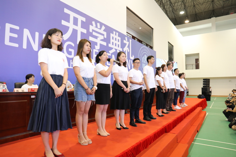 二级学院新生辅导员代表齐聚一堂,为新生送上最美的祝愿,将开学典礼瞬间点燃成面向全体新生的“不忘初心、牢记使命”主题教育的生动党课。