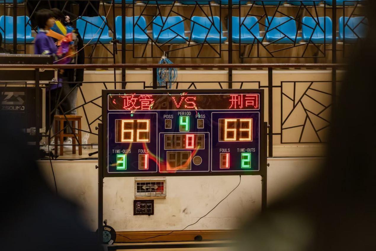 下半场的比赛更是跌宕起伏,政府管理学院逐渐加快进攻节奏,努力赶超比分,刑事司法学院的球员也不甘落后,不断抵抗着攻方的冲击。在第三节末,政府管理学院球员凭借着两个三分将差距逐渐缩小。