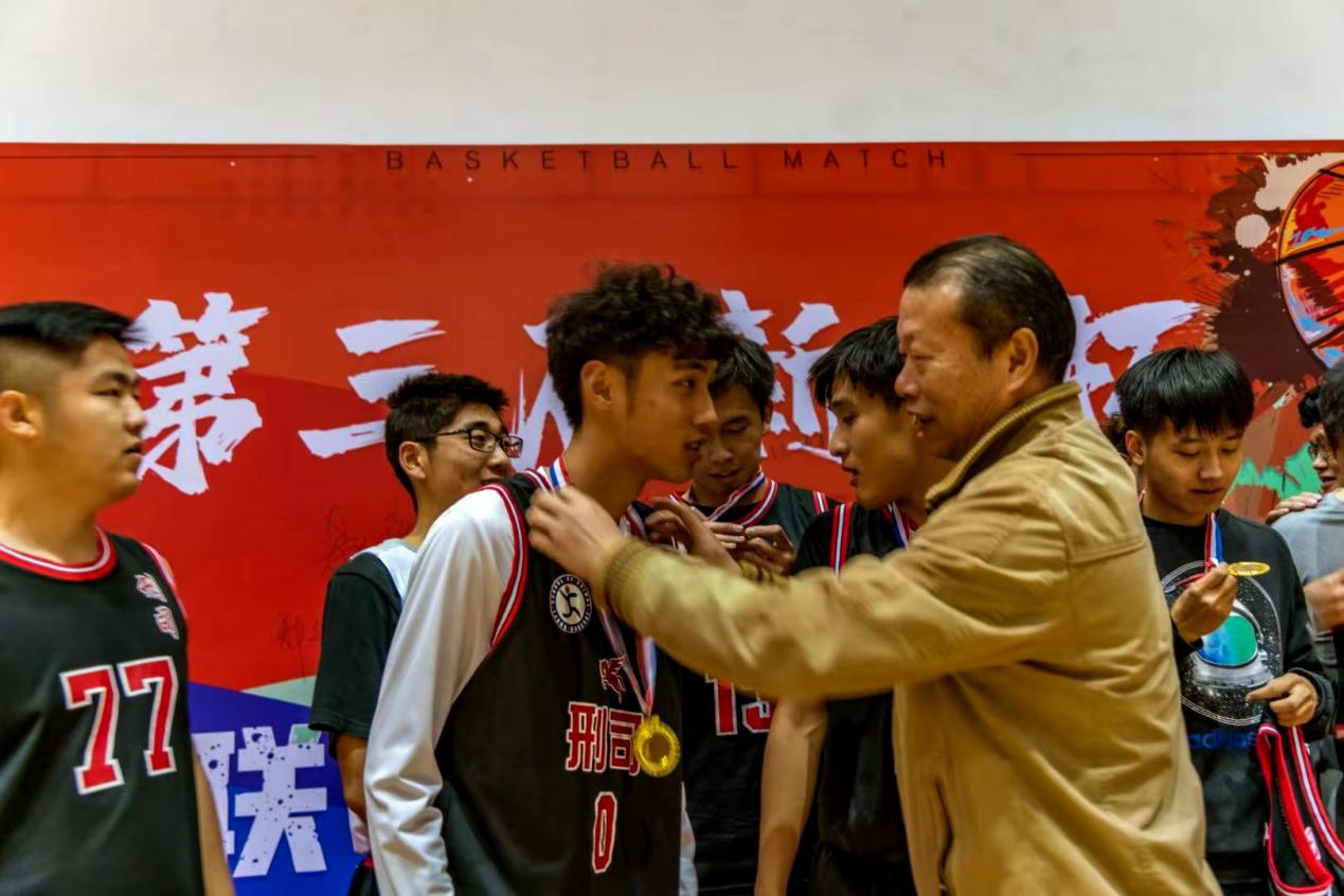 闭幕式颁奖环节,体育部主任谭小勇、校团委胡飞宇分别为2020年“新生杯”篮球联赛的冠亚季军颁发奖杯和奖牌。