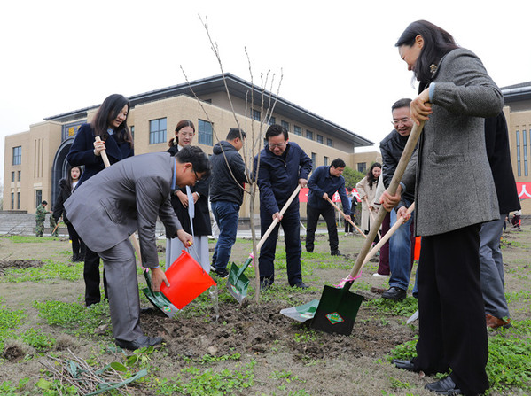 三月的上政校园,杨柳抽新绿,玉兰吐芳蕊,到处充满着勃勃生机。在第43个全民义务植树节到来之际,3月12日上午,校党委书记夏小和,校党委副书记、校长刘晓红,校党委副书记、纪委书记潘牧天,校党委副书记刘刚,副校长胡继灵以及上房物业外包事业部总经理张海军来到学校搏越馆前广场,与师生代表一起参加义务植树活动。
