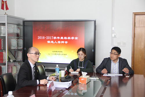 327日下午,我校2016-2017学年里格奖学金面试评审会在主教106B召开。参加此次评审会的有上海里格律师事务所合伙人曾立圻律师,人事经理宋婷婷,评审会由学生处王洪全主持。