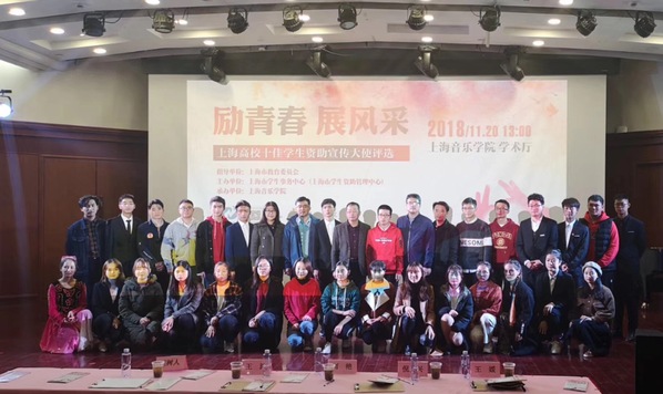 1120日下午,由上海市教委指导、上海市学生事务中心主办、上海音乐学院承办的励青春 展风采”——上海高校十佳学生资助宣传大使现场评选大赛于上海音乐学院学术厅拉开序幕。上海市学生事务中心副主任王涛、上海音乐学院党委副书记刘艳、上海财经大学学工部部长倪志兴、上海戏剧学院学工部副部长王树人等莅临现场。