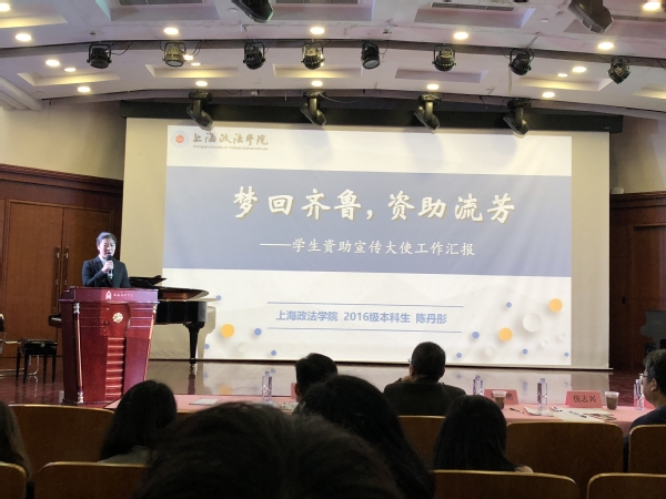 我校刑事司法学院2016级本科生陈丹彤同学在所作的梦回齐鲁 资助流芳演讲中,围绕暑期开展的资助政策宣传工作进行展示,以其表达的流畅性、学习资助政策的系统性、宣讲内容的丰富性和拓展性,最终获得评委肯定,成功入选上海高校十佳学生资助宣传大使