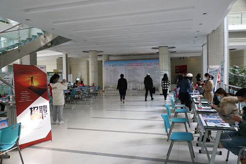 招聘会现场气氛良好,用人单位利用图文并茂的展板介绍企业和招聘岗位,学生们也积极同单位人员进行沟通。企业和学生间的互动有力助推“人岗匹配”精准对接的实现。