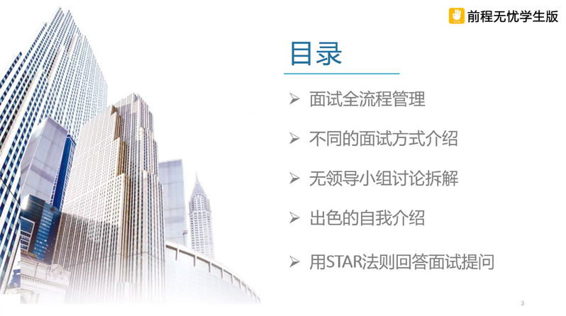 徐凤英从面试全流程管理、面试方法介绍、无领导小组讨论拆解、出色的自我介绍、STAR法则在面试提问中的应用这五个板块展开介绍。其中,对于面试中的注意事项,徐凤英强调,在面试前应知己、知彼、端正心态、沉稳自信,面试中注意表情管理、语言表达、行为礼仪,珍惜面试前的15秒,给面试官留下好的第一印象,表明求职动机,强调个人价值。