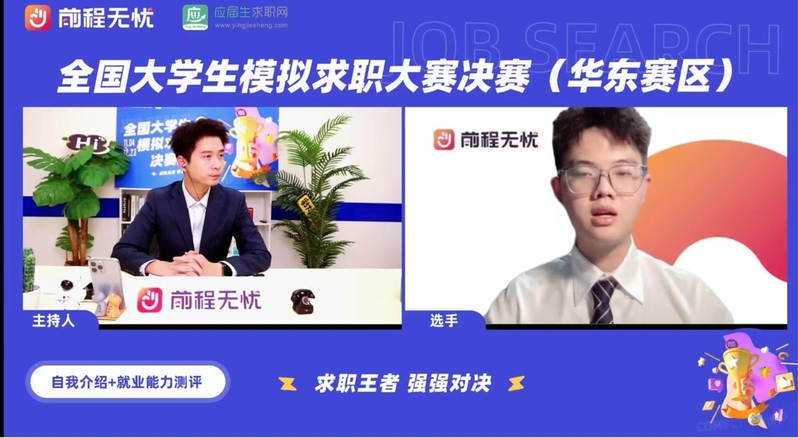 该场全国决赛共设一等奖1名,二等奖1名,三等奖3名和优胜奖若干名,由各大企业HR及前程无忧资深导师担任评委,比赛共分为三轮举行。第一轮为自我介绍和就业能力测评,选手结合简历每人进行两分钟个人展示;第二轮为“针锋相对”,采用“一对一”的形式针对赛题进行辩论;第三轮为即兴演讲,根据给出的行业题目每人进行两分钟的演讲。