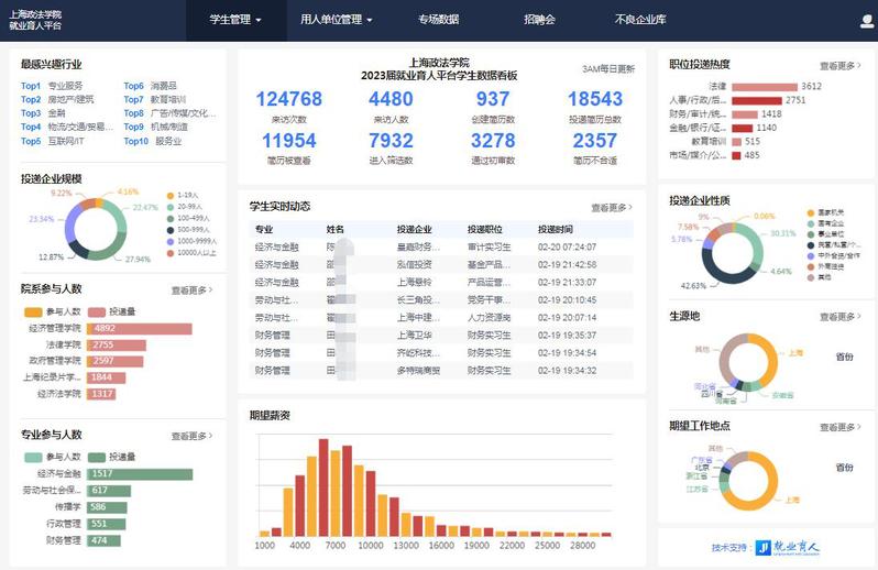 利用春季就业黄金期,“用心”推送岗位信息。举办线上招聘会——新利18官方客服2023届毕业系列招聘活动,暨2023届毕业生第19场线上招聘会,组织681家单位参会,提供3116个岗位、10679个用人需求;组织学生参加上海市2023届高校毕业生系列招聘会暨港澳台侨毕业生专场招聘会,通过24365国家大学生就业服务平台,学校就业信息网发布招聘信息,营造良好就业氛围。寒假以来,学校学生就业服务中心通过毕业班辅导员“点对点”推介就业岗位十余次,“上政就业”官方微信公众号不间断推送招聘信息和实习信息130条,浏览量近5万人次。