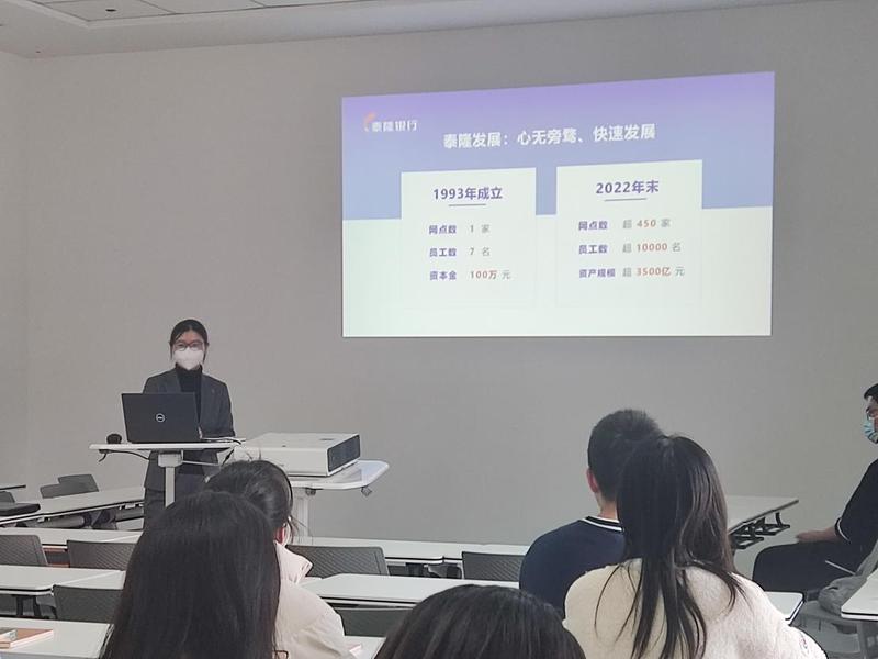 浙江泰隆商业银行招聘经理周荔介绍了银行的基本情况和校招岗位面试流程,并强调了泰隆银行的独特优势——不仅具有人性化的薪酬调整机制,更有完备的福利体系。
