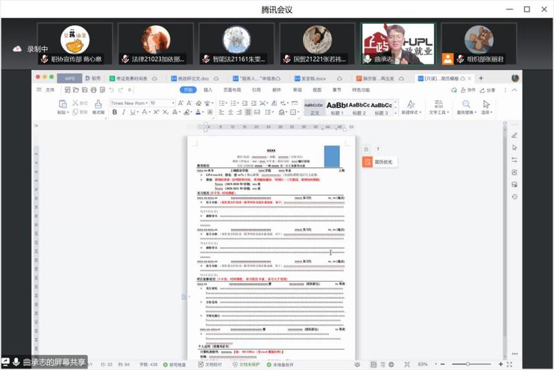 3月7日下午,我校通过线上方式开展“就业有话说”系列活动之简历制作朋辈指导活动,此次活动由学生工作部学生就业服务中心主办,2022年前程无忧全国模拟求职大赛二等奖、校模拟求职大赛一等奖获得者经济管理学院学生曲承志主讲,通过腾讯会议进行“一对一”连线,吸引五十余名学生参与其中。