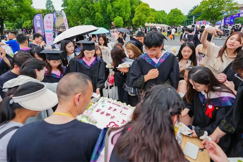 毕业典礼全程进行图片直播,观看量达5万+。当天,图书馆广场前的毕业市集热闹非凡,毕业生和校友们纷至沓来,品尝熟悉的“上政味道”,各二级学院也开展了形式多样的校友活动,大家相聚上政,共忆校园往事,共叙同窗情怀。(谢涛丽 撰稿 )