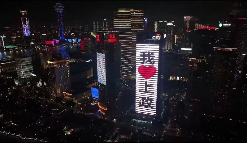 暖场视频《微笑着说再见》带领大家一起重温了美好难忘的大学时光。当视频中出现6月10日晚外滩大屏为上政学子点亮的画面时,全场沸腾,掌声雷动,毕业生和校友们再次为母校的这份暖心祝福感到温暖和自豪。