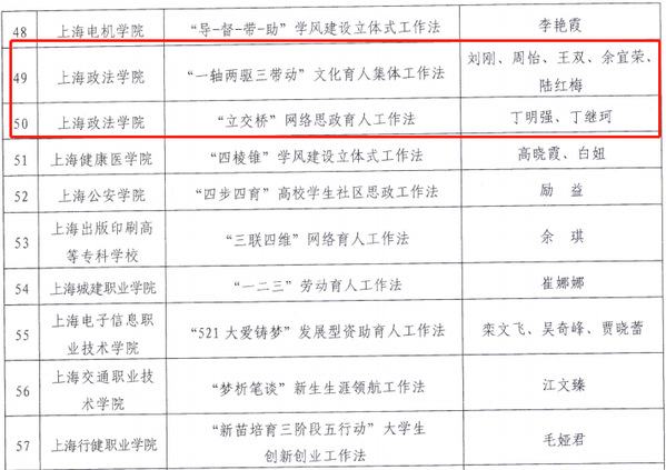 为学习贯彻党的二十大精神,用习近平新时代中国特色社会主义思想铸魂育人,强化高校辅导员队伍专业化职业化建设,总结推广辅导员工作经验做法,近日,市教卫工作党委、市教委组织开展了上海高校辅导员特色工作法征集展示工作。经学校推荐、材料审核、专家评审等环节,我校2个团队成功入选2022年上海高校辅导员特色工作法。