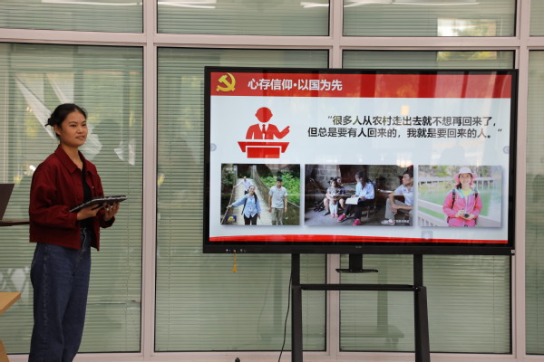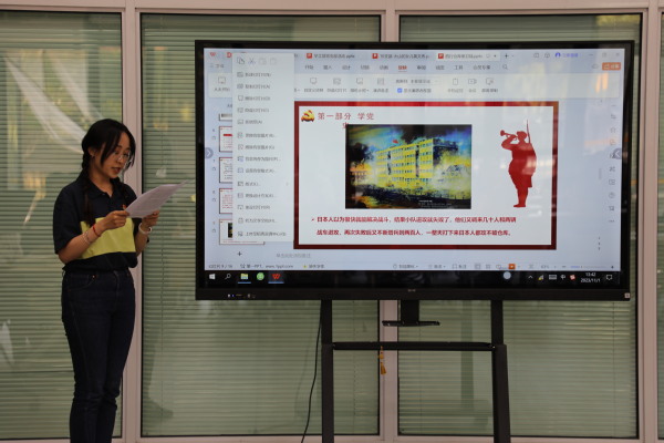 爱国主义教育内容的不断丰富、教育载体的不断创新,使得爱国主义成为每一个中国人的坚定信念和精神依靠。上政第10学生党支部李玉娇同学以一心为民、把扶贫路当作长征路的扶贫干部黄文秀的事迹为主题分享了个人的学习体会,展现了青年学生热爱中国这片土地、热爱中国人民的“大我”情怀。上政第14学生党支部黄慧敏同学以“四行仓库的一封家书”为题,生动讲述了八百壮士用血肉之躯筑起坚强防线的情况,把英雄的坚守刻画得淋漓尽致。上政第24学生党支部程诗媛同学以“爱国三问”强调爱国和团结奋斗的重要性,指出“爱国三问”是历史之问、现实之问,也是未来之问,青年学生应该用奋斗去书写新时代的“爱国三问”。