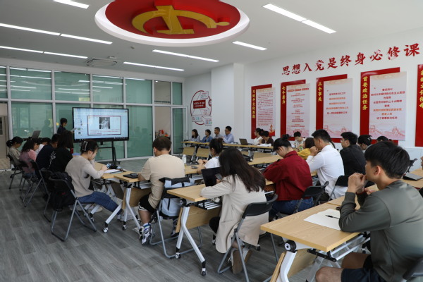 学工部副部长柯心、徐丽红、周怡代表学工部党支部向结对学生党支部赠送红色图书,激励学生传承红色记忆,弘扬先辈精神,让爱国主义在新时代青年中走深走实。(余宜荣撰稿 林嘉怡摄影)
