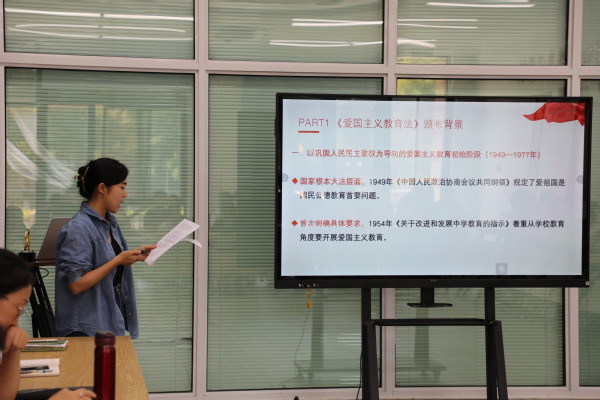 爱国主义是中华民族精神的核心,是中华民族的民族心、民族魂,激励着一代又一代中华儿女为祖国发展繁荣而自强不息、不懈奋斗。恰逢《中华人民共和国爱国主义教育法》颁布之际,学工部教工党支部宣传委员余宜荣介绍了该法的诞生背景、爱国主义教育的主要内容和颁布意义。这一专门法深化了爱国主义教育研究和爱国主义精神阐释,为爱国主义教育提供了有力的法制保障。