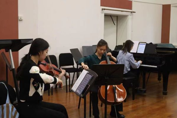 本次活动以“以美育人,培根铸魂”为主题,通过欣赏音乐课堂、聆听场馆讲解、参观上音歌剧院的方式开展。活动伊始,刘莹老师带领同学们来到管弦系演奏厅,进行了一次别开生面的“音乐小课堂”。课堂分为三部分,第一部分为“钢琴三重奏”,三位演奏者为同学们带来德国古典主义音乐家勃拉姆斯之作;第二部分为“钢琴四重奏”,印象派作曲家德彪西的欢快之声在演奏厅环绕,让同学们真实地进入到音乐的世界;第三部分为萨克斯独奏,演奏者和同学们热情互动,并以独奏曲《海鸥》为例,引导同学们通过乐声探索背后的意象。本节音乐小课堂将知识教授与互动交流结合、音乐鉴赏与文化学习融通,演奏过程中穿插着音乐家勃拉姆斯的生平介绍、德彪西的印象派作品的由来,也有“听曲识人”“听曲识歌”大比拼,更有关于音乐会小提琴、中提琴和大提琴的座次等趣味知识。同学们沉浸其中,收获满满。交流结束后,师生共同参观了上海音乐学院校史馆和歌剧院。