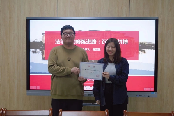 本次活动以“法学生的修炼进路:沉潜与拼搏”为主题,通过老师发言引入,嘉宾分享介绍、朋辈交流互动的形式开展。分享开始前,颜涵老师作开场发言并为程嘉骏颁发“朋辈讲师”聘书,她结合程嘉骏的新利体育平台首页网址查询经历鼓励同学们注重培养科研思维、系统学习科研方法,以理论指导实践,择定感兴趣的研究方向进行实践性学习。
