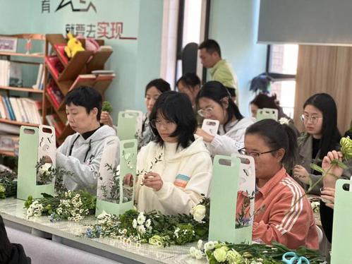 在讲解过程中,花艺老师以实际演示的方式展示了插花的方法和技巧,熟练地指导大家如何处理和组合花材。学校师生们跟随着花艺老师的指导,修剪、整理、拼插手上的花材。活动现场,阵阵花香扑鼻而来,大家一边研究创作,一边不断分享心得。欢声笑语中,大家不仅亲身体验到了插花制作的乐趣,也感受到了其活动中的幸福氛围。细腻的花香在空气中弥漫,情感也在活动中延续。
