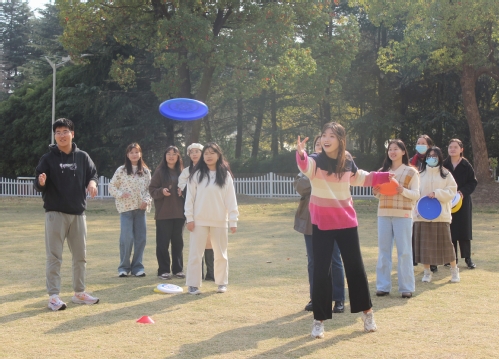 团队比赛齐奋斗,互相鼓励更团结。在竞技项目飞盘九宫格和飞盘投准框的比赛中,易班同学们在几次对练中培养了默契,精彩的比赛获得了同队的队友的热烈呐喊和助威,无论成功与失败,空中飞过的飞盘见证了易班人之间的友谊。