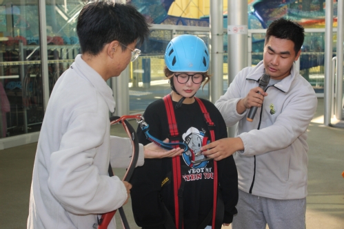 下一环节,大家进入了身后的“蜂巢塔”,准备开启新一轮的冒险。一番准备后,“全副武装”的众人,带着紧张与期待,走上了惊险的攀登道路。走过空中的平衡木,跨越摇晃的木板桥,攀过狭窄的绳索网,大家不畏艰险,一步步向前、向上,亦不忘等待落后的伙伴,以温暖的言语带给他们前进的勇气与力量。易班同学们挑战了自我,在同行的伙伴的一声声加油鼓励之声中一路披荆斩棘、过关斩将,通过了一个个刺激惊险的关卡。