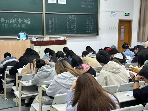 融合线上线下,着力学风建设。本次诗词大会坚持以赛促教、以赛促学,以线上平台学习培训,线下比赛的形式开展。赛前,各参赛队伍通过易班优课平台观看相关课程学习诗词基本知识,了解赛事规则和通知。初赛以笔试考试集中进行,通过丰富多样的试题考察选手的诗词知识掌握程度。复赛和决赛以现场赛形式进行,精心设置“点字成诗”“解词释义”“见词如见诗”“飞花令”等比赛环节。决赛比赛间隙,用民乐合奏、诗词朗诵等形式,展示中华优秀传统文化的生命力。