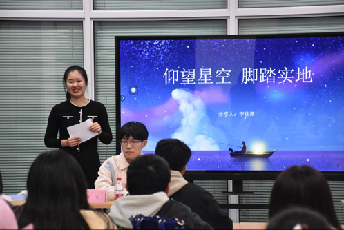 “未来,总是有无限可能的”。在李佳潭的大学生活中,她也遇见过各种焦虑与压力,但她认为耐心的等待、坚定的选择、坚实的基础和一点点幸运才能破茧成蝶。她分享了自己从大一到大三的学习生活,总结了每个阶段所遇见的困难和解决方案,向同学们展示了她的取舍之道。李佳潭从自身经历出发,通过讲述自身从迷茫焦虑到找到自我选择的心路历程,积极鼓励同学们遵循本意,勇敢探索,不要恐惧不要焦虑,未来本就是有无限可能的。