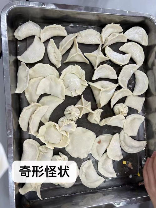 同学们分工协作,有条不紊,活动现场欢声笑语,热闹非凡,展开一场“创意饺子赛”。元宝饺、鱼骨饺、海星饺、还有迷你的包子,让想象与实践碰撞出浪漫的火花。经过一个多小时的共同努力,一排排造型各异的饺子诞生了,同学们纷纷拍照,以纪念这美好的瞬间。