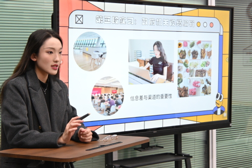 第三段实习经历是教育机构新媒体运营,她提醒大家要学会利用求职平台。以实习僧APP为例,要选择适合自己的实习职位,从小做起,不好高骛远。她再次强调要保存好自己具备的能力的证明,有利于撰写简历。第四段实习经历是营销公司新媒体运营,她强调要抓住学长学姐的内推资源和在校经历的技能累积等等。在抓住机遇的过程中,往往需要灵活调整策略。机遇可能来得很突然,我们要及时调整自己的计划和策略,以适应新的情况和需求。有时候,我们可能需要暂时放下手头的项目,投入更多的资源和精力去抓住新的机遇。第五段实习在政府机关视频剪辑,她指出信息差与渠道的重要性。