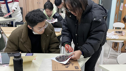 史莺老师说:“匠人的共同点就是有耐心,希望各位同学老师无论是在本次活动中还是其他活动以及在生活中,要保持耐心,不要着急”。活动现场,大家在活动中欢声笑语,既在劳动中传承了非遗文化,又在手工中增进感情。在剪刀的运作下,龙身逐渐浮现,祥云翻涌,凶猛的春意向眼前涌来,美好的祈盼跃然纸上。