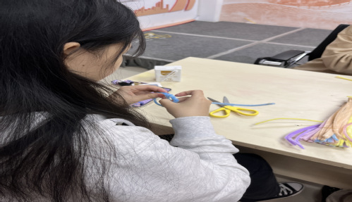 本次活动通过向同学们提供扭扭棒、彩色毛球、发箍、夹子、热熔枪、胶水等工具,鼓励大家发挥自己的想象力,创造出能够展现每个人不同内心活动的的手工作品。希望通过这次手工活动,能让同学们从平常的快节奏的生活中暂时脱离出来,体验慢生活,来一场艺术疗愈。