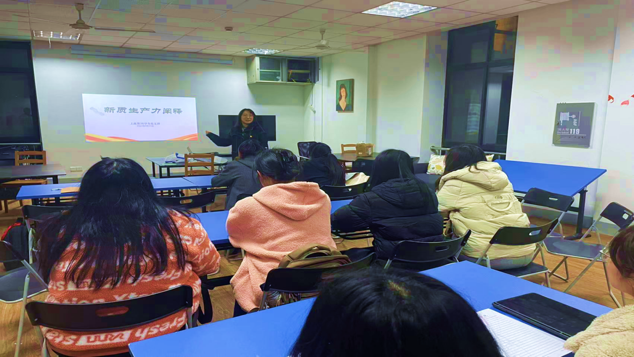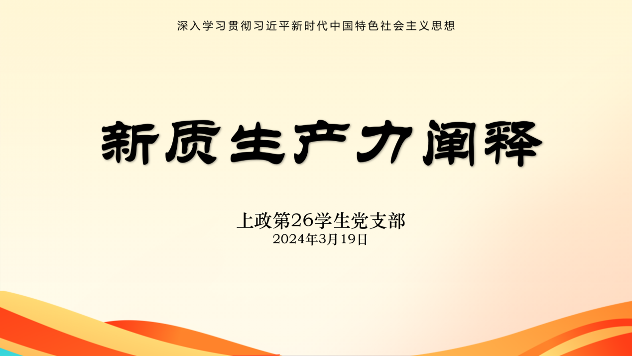 为深入开展学习贯彻习近平新时代中国特色社会主义思想主题教育,深化学生党员对生产力发展规律的认识,领悟习近平经济思想内涵。上政第26学生党支部于319日在社区活动室开展《新质生产力阐释——推动高质量发展的内在要求和重要着力点》专题党课学习。