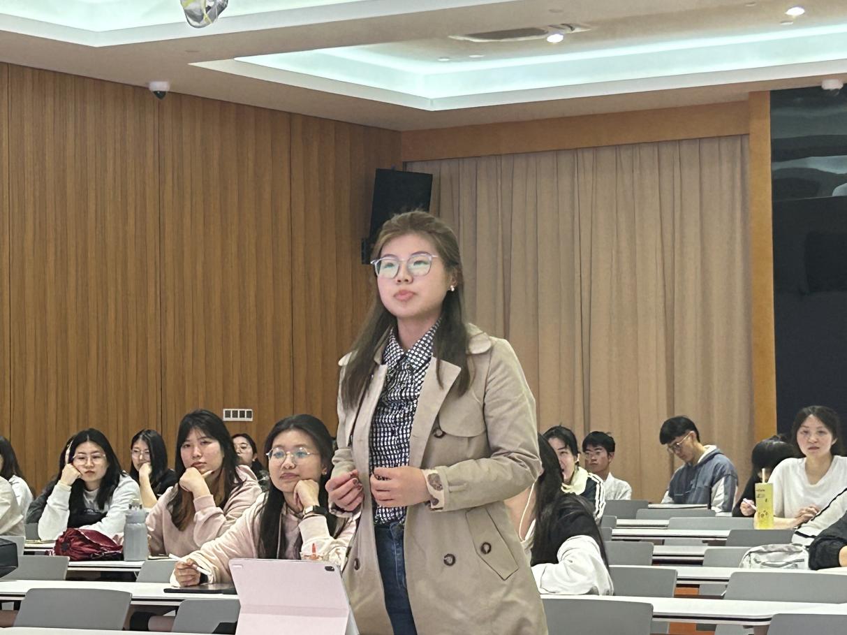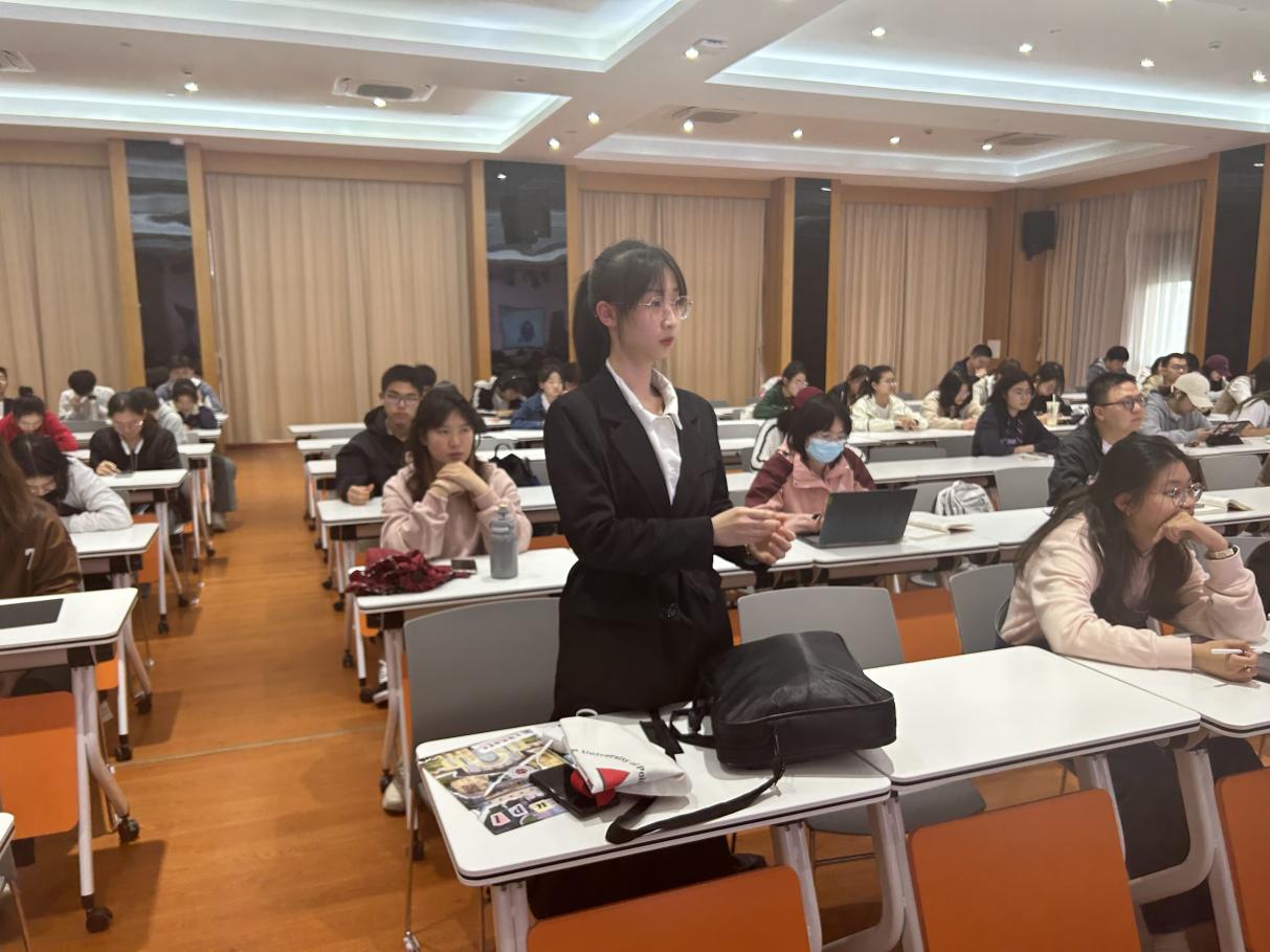 秦浩宁同学作为赛队助理,从选拔赛队成员角度分享了实用信息,并邀请优秀同学积极参与到接下来的英文模拟法庭竞赛赛队队员选拔中。