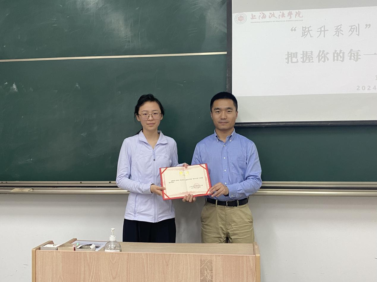 讲座开始前,学员班班主任、学生工作部黄益辉老师为刘珂杉颁发了“跃升计划青年导师”聘书。