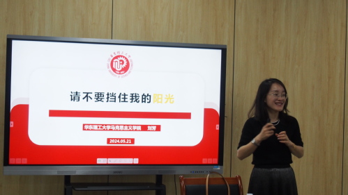 5月21日下午,腾飞计划学员班于成德楼开展哲学与人文讲座。主讲嘉宾、华东理工大学副教授刘芳“请不要挡住我的阳光”为主题作报告腾飞计划学员班全体学员聆听讲座