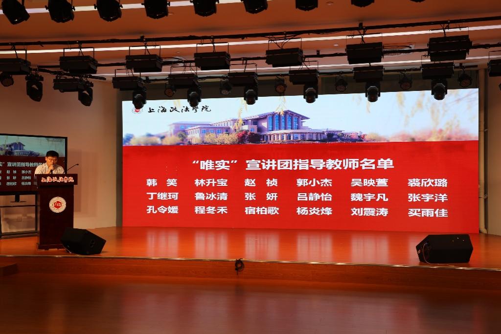 校团委副书记胡飞宇宣读了“唯实”宣讲团学生成员及指导教师名单。