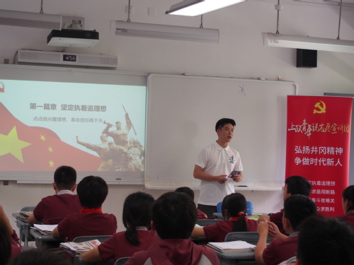 在上海工商信息学校的宣讲会上,现场气氛活跃,学生们不时与宣讲团成员进行互动。参与宣讲的学生表示,要将自己所学的专业技能与井冈山精神结合起来,用自己的不懈奋斗谱写青春华章。