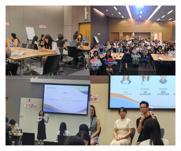 在主题沙龙环节,微软亚太研发集团技术支持工程师杨益、微软亚太研发集团技术支持工程师吴嘉懿、微软亚太研发集团云解决方案架构师袁文弢三名微软工作人员与同学们分享了自己就业道路上的一些经验和做法,如从校园到职场的心路历程和一些面试技巧等,鼓励同学们要勇于探索、多实习、多去尝试自己感兴趣的领域。在随后的“拥抱变化 自我‘刷新’”活动中,师生以小组讨论形式,与微软公司的代表和海鸥计划的导师进行了深入的交流和探讨。