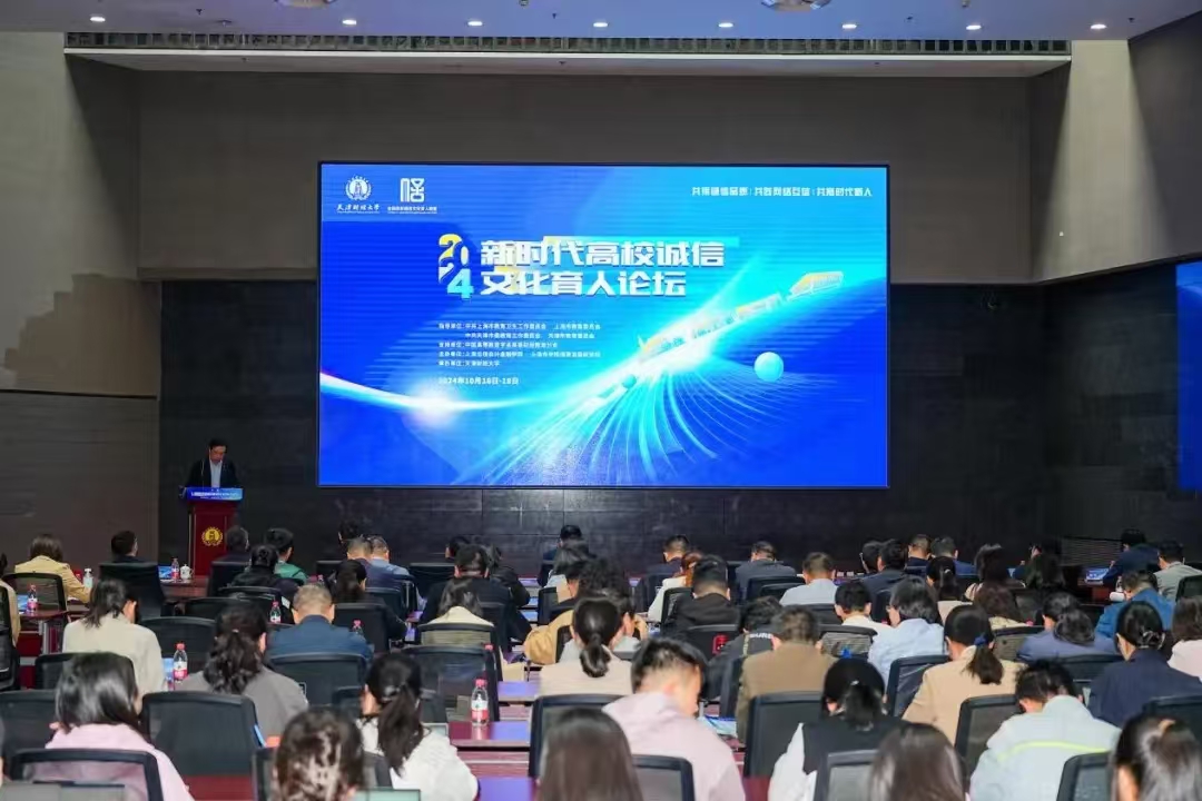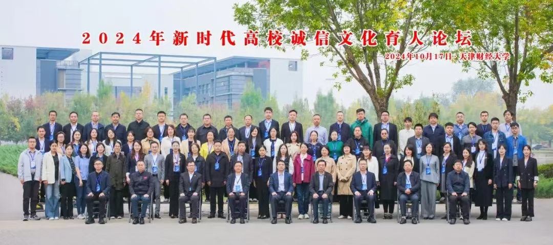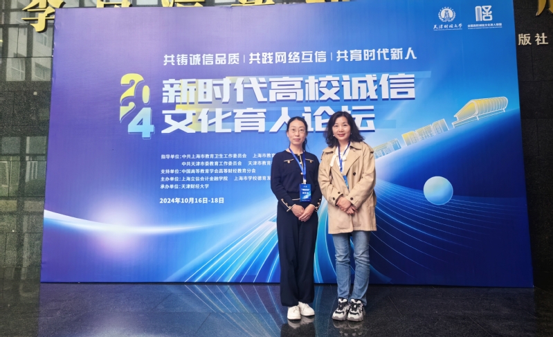 1017日,2024年新时代高校诚信文化育人论坛在天津财经大学举办。中国高等教育学会高等财经教育分会副理事长兼秘书长张国才,教育部中国大学生在线、全国高校思想政治工作网主任、中教华影电影院线股份有限公司董事长王卫权,40余所高校诚信文化育人论坛联盟单位的领导、学者专家出席本次论坛。作为2023年新增成员单位,我校学生工作部副部长徐丽红、学生易班发展中心谢涛丽参加本次论坛。