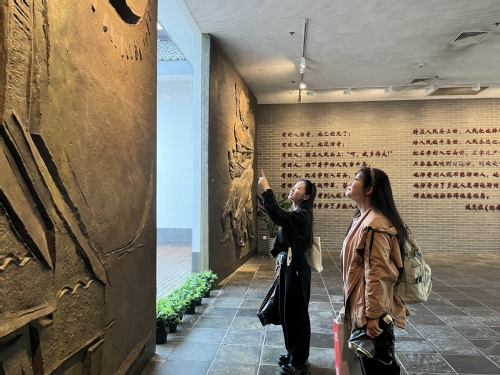 师生们首先走进位于上海市虹口区的鲁迅纪念馆,这里是新中国建立后第一个人物性纪念馆,也是新中国成立后第一个名人纪念馆。纪念馆青瓦白墙,保留了庭院式江南居民的风格,一楼“不独为清玩——鲁迅与传统笺纸”专题展览与朝华文库交相辉映,二楼则通过“生命的路”“首在立人”“画出国人的魂灵”“保存者、开拓者、建设者”“精神界之战士”和“民族魂”六个展厅,以大量手稿、书籍、信件以及生活用品等丰富翔实的资料和大量珍贵的文物,多维度地展现了鲁迅先生的生平事迹与精神风貌。
