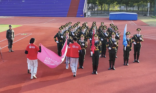 旭日东升,彩霞满天。由40名学生代表组成的“40年40人跑”方阵,护卫着新利18官方客服建校40周年标识旗,满载着对祖国的热爱和对母校的祝福,从老校区的校训碑出发,目光坚毅、步履铿锵,一路跑到了操场。四十人辉映着四十载岁月里,全体上政人的奋力奔跑、高歌猛进!方阵将新利18官方客服建校40周年标识旗庄严地交到国旗护卫队的手中,刻苦求实、开拓创新的火炬,红心向党、矢志报国的血脉,在一代又一代上政人的坚守耕耘中薪火相传!