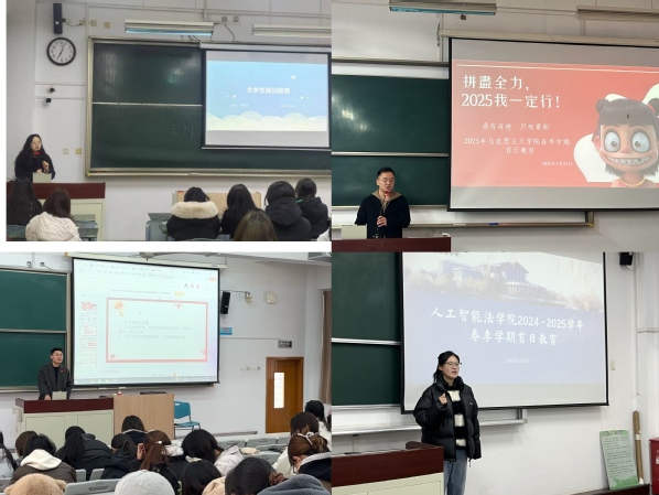 法律学院针对近年来电信网络诈骗案件高发态势,结合近年我校发生的真实案例,向同学们揭秘了刷单兼职冒充客服网络贷款等常见诈骗套路,提醒同学们增强防范意识,保护自身安全。经济法学院通过上学期,你的收获是什么新学期,你有什么期待两个问题引入,围绕综合能力容错率使命感等关键词引导法学生结合时代需要和个人发展进行生涯规划,提升职场竞争力。国际法学院围绕“TikTok难民涌入小红书这一社会热点,与同学们展开讨论并分析其带来的机遇与挑战,引导同学们从国际规则和文化交流视角出发,以专业知识为基石,积极思考如何促进不同平台间的良性互动与国际传播秩序的完善,勇担社会责任。刑事司法学院以全院学生德育状况调研为基础,以寒假热门电影《哪吒之魔童降世》为切入,鼓励同学们在新学期拼尽全力,随时开始都来得及。警务学院以破茧·突围·重构——数字时代大学生认知觉醒与行动指南为主题,从认知突破、安全防护、实践行动三维度助力学生成长。人工智能法学院以“DeepSeek开源AI大模型为主题,通过往届从事法律AI研究员的优秀毕业生案例,结合近日政务系统引入AI公务员的热点事件,与同学们共同探讨DeepSeek对学习课业的实际帮助,激励同学们学以致用,以自身专业知识在当今时代找到立足之地,实现个人价值与社会发展的双重目标。经济管理学院聚焦心理健康教育,提出新时代大学生实用心理调适指南,鼓励学生们关注自身心理状态,遇到困扰时及时与老师、同学沟通,或向学校心理健康教育中心寻求帮助。政府管理学院以生涯教育为抓手,分年级开展精准帮扶。大四强调春招重要性,鼓励同学们进行简历投递;大三要结合个人实际寻找适合的生涯方向;大一大二强调积极参与科研创新、社会实践、实习见习等。语言文化学院围绕经验传承、影视赋能、专业筑基、目标铸剑四大主题,邀请优秀学生分享学习、竞赛及实习经验,强调时间管理、实践探索与目标规划的重要性。上海纪录片学院以“AI能跳舞,哪吒能闹海,你的新学期必杀技是?为主题,带领同学们重温央视春晚赛博秧歌,从Deepseek横空出世和哪吒IP现象级爆火入手,鼓舞同学们要像Deepseek不断突破自我、哪吒踏上新征程一样,以崭新面貌迎接挑战。马克思主义学院聚焦安全教育,通过案例讲解详细阐述了消防安全、网络安全、人身财产安全等内容,引导同学们树立正确的安全观,增强安全防范意识和自我保护能力。