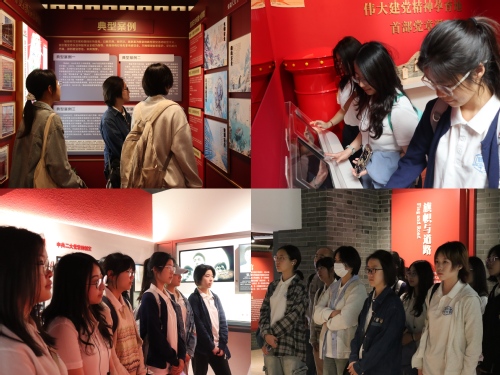 在讲解员的带领下,同学们依次参观了序厅、基本陈列厅及互动体验区。序厅通过实景还原、历史影像及声音装置,重现了中共二大召开的历史时刻与背景氛围,引导同学们理解百年前中国共产党人探索救国救民道路的初心和使命。